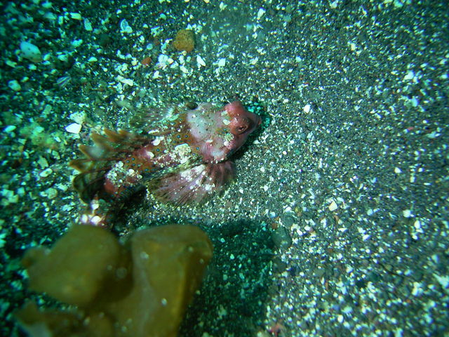 洞窟内には、定番のマツカサウオ。
